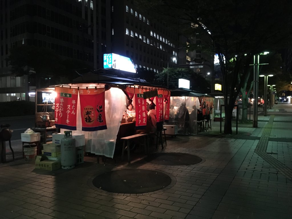 夜の散歩に、天神から中洲にかけて屋台を巡ってみましょう。